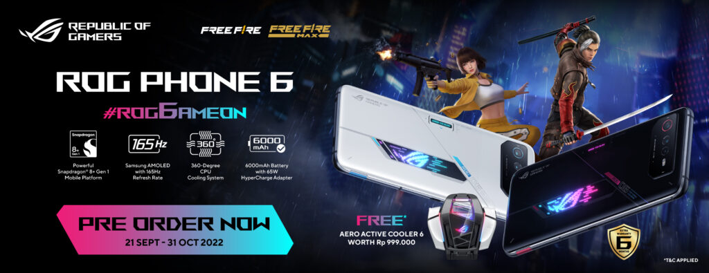 LABtekno.com – ROG Phone 6 sudah diluncurkan beberapa minggu yang lalu. Kalian sudah dapat melakukan pre-order sejak 21 September – 30 Oktober nanti. Akan berkesempatan mendapatkan aksesoris gaming gratis bagi kalian, yaitu Aero Active Cooler 6.