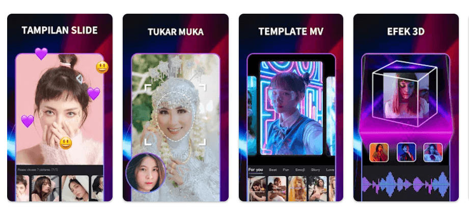 Slideshow Foto ditambah efek menarik. Hal ini bisa Anda lakukan melalui aplikasi Mivo karena telah tersedia berbagai efek menarik. Di antaranya menambahkan efek animasi, 3D, neon hingga kartun. Kualitas yang dihasilkan juga bagus dan cocok untuk kebutuhan konten sehari-hari.