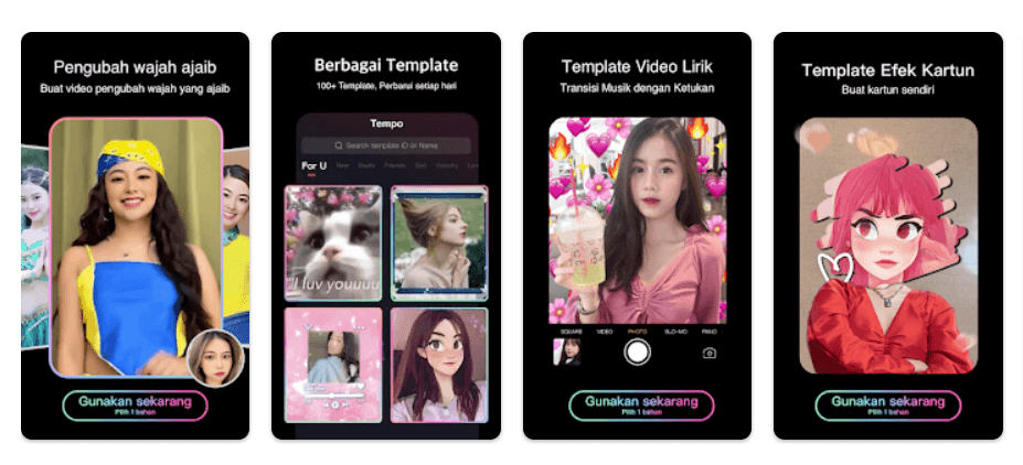 Aplikasi edit foto ganti wajah pengantin yang pertama adalah Tempo. Bukan Tempo surat kabar, melainkan aplikasi editor video efek musik. Anda dapat mengunduhnya secara gratis di Google Play Store.