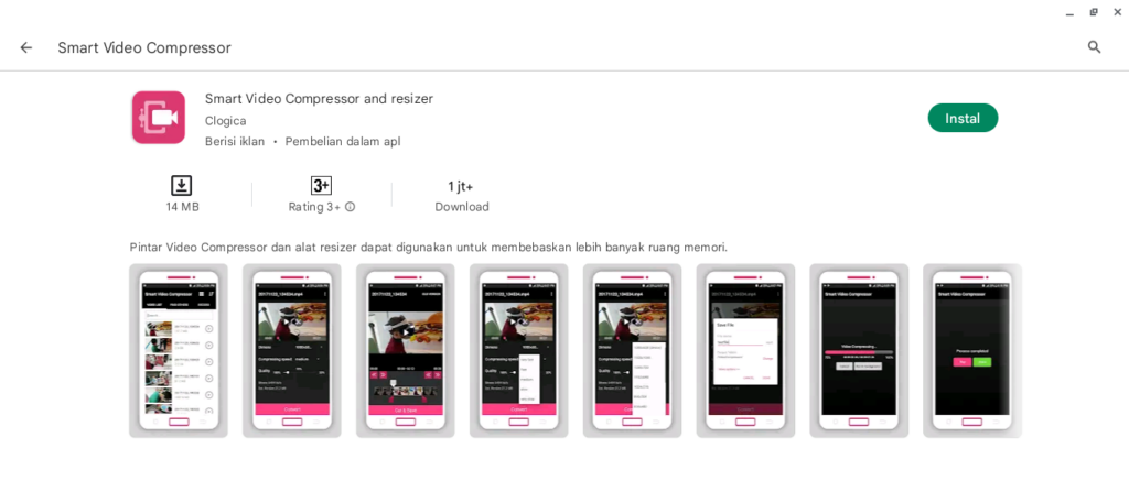Aplikasi kompres video android gratis selanjutnya adalah Smart Video Compressor and Resizer. Melalui aplikasi ini, Anda dapat mengecilkan ukuran video yang diinginkan secara sederhana dan cepat.