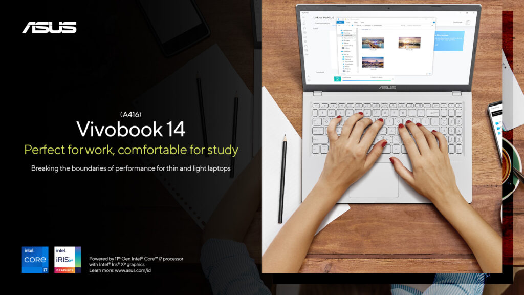 Labtekno.com – ASUS A416 (11th Gen Intel) merupakan laptop berukuran 14 inci yang disebut-sebut memiliki kinerja sebagai kebutuhan untuk kerja kantoran, kuliah, atau bermain game. Paket lengkap untuk laptop entry level. Desainnya Thin & Lightweight (tipis & ringan) dengan rincian dimensi 32.5cm x 21.6cm x 1.99cm dengan bobot 1.6 Kg. Dengan ketipisan dan beratnya yang ringan, membuat laptop ini mampu tampil dengan bodi yang sangat ringkas dan mudah dibawa bekerja dimanapun.