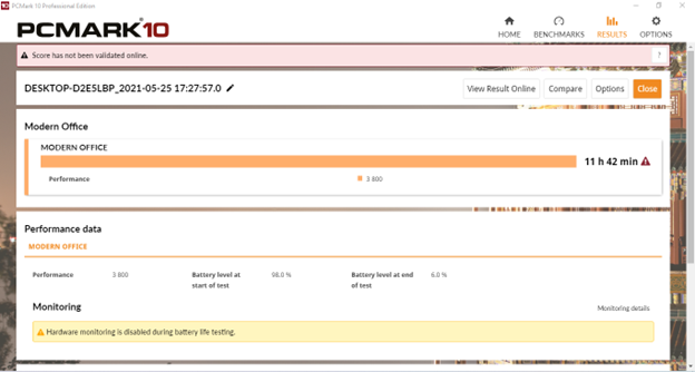 Harus mengisi daya baterai laptop ketika sedang digunakan untuk aktivitas berlajar memang tidak akan menjadi pengalaman yang menyenangkan. Untuk itulah ASUS BR1100 dilengkapi dengan baterai berkapasitas 42WHrs yang mampu membuatnya dapat digunakan hingga lebih dari 10 jam. Bahkan dalam pengujian menggunakan PCMark 10 Battery Benchmark pada mode Modern Office, ASUS BR1100FCK yang ditenagai prosesor Intel Celeron N5100 bisa bertahan hingga 11 jam 42 menit. Daya tahan baterai tersebut sangat cukup untuk menemani kegiatan belajar anak-anak seharian.