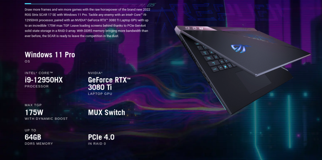 Bagian GPU, ASUS ROG Strix SCAR 17 Special Edition mempercayakannya pada NVIDIA GeForce RTX 3080Ti. GPU tersebut saat ini sangat identik dengan pengolah grafis terbaik yang hanya ada pada laptop dengan spek dewa.