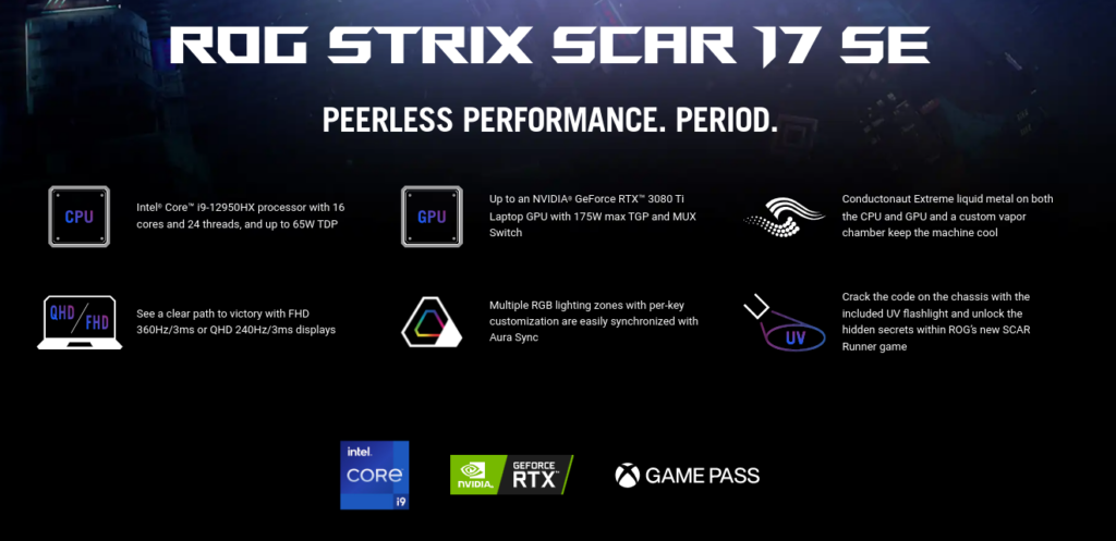 Spesifikasi Utama ASUS ROG Strix SCAR 17 Special Edition (G733C)