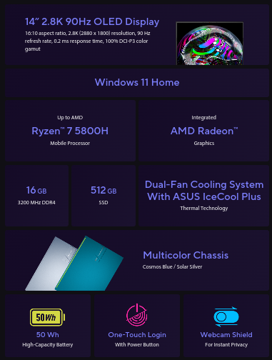 | Spesifikasi | ASUS Vivobook Pro OLED 14 M3400 |
