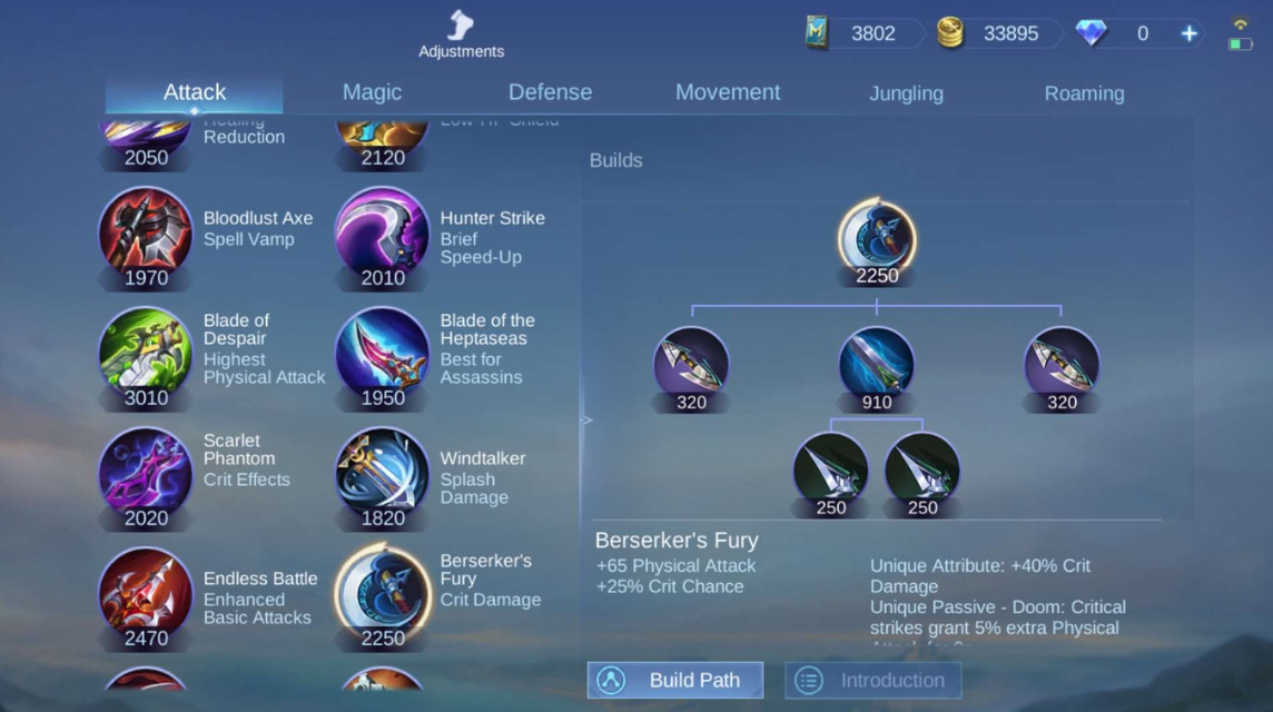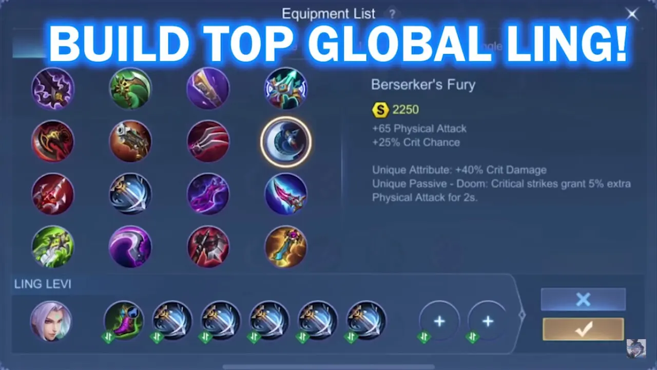 Item pertama untuk membuat build Ling tersakit adalah Berserker’s Fury. Item ini memang cocok untuk Ling karena bisa menambahkan stat berupa +65 Physical Attack dan +25% Crit Chance.
