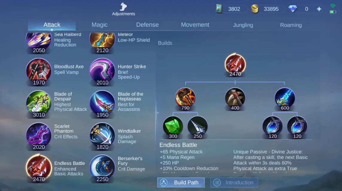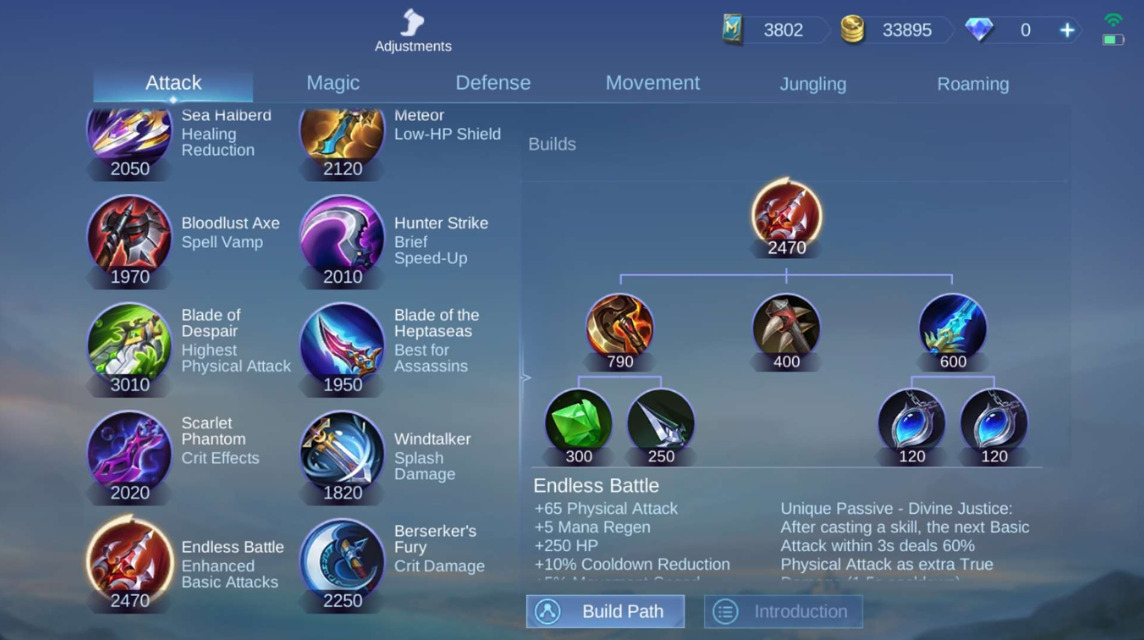 Kesampingkan dulu pasif unik pada item ini, Endless Battle mampu menambahkan +65 Physical Attack, +5 Mana Regen, +250 HP untuk durabilitas, +10% Cooldown Reduction, dan +5% Movement Speed agar Ling semakin lincah.