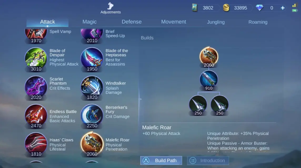 Pada atribut keduanya, yaitu atribut unik Malefic Roar mampu meningkatkan +35% Physical Penetration.