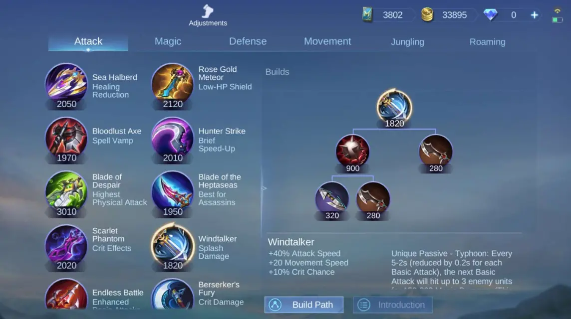 Kemudian item kedua yang bisa kalian gunakan untuk membuat build Ling tersakit adalah Windtalker. Item ini bisa memberikan stat berguna seperti penambahan Attack Speed, Movement Speed, dan juga Crit Chance.