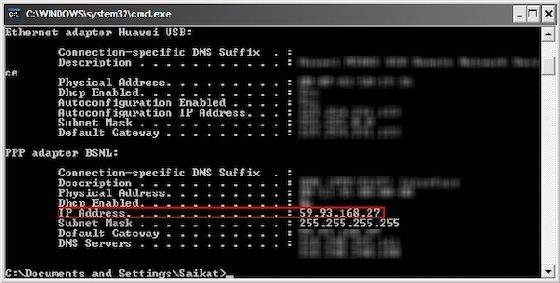1. Catat atau copy alamat IP yang terdapat pada command prompt.