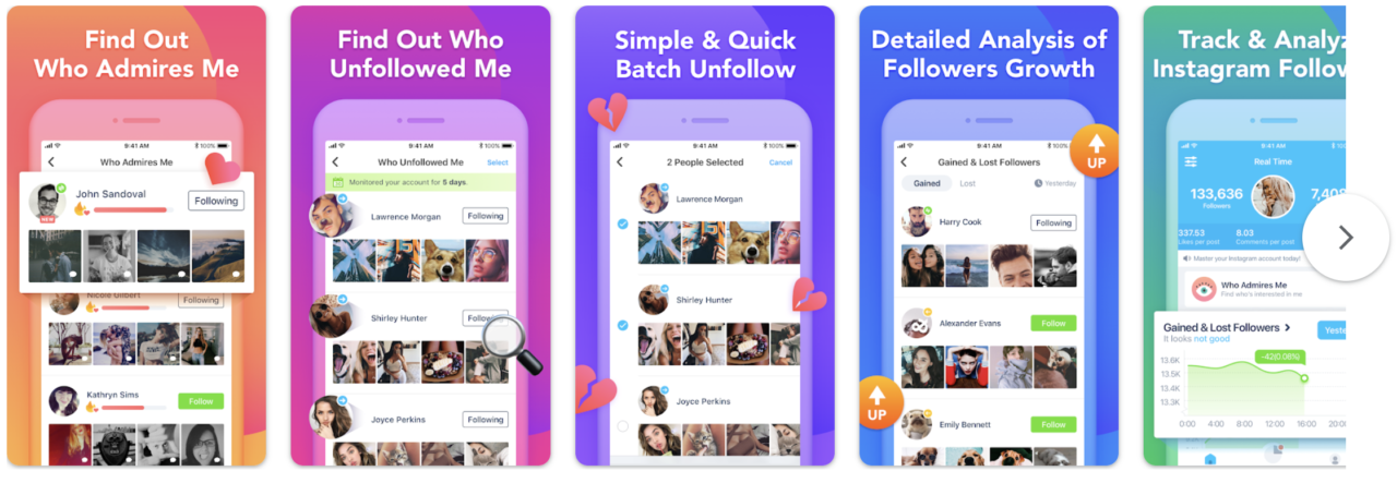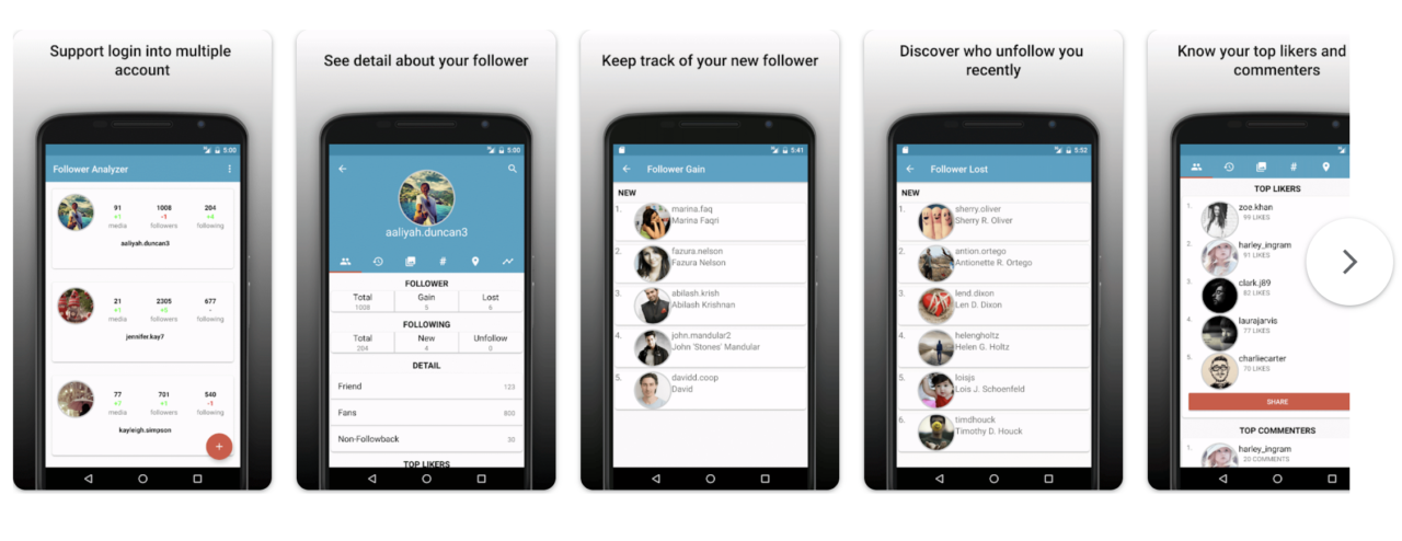 Hampir sama seperti aplikasi sebelumnya, aplikasi ini juga bisa menampilkan daftar followers baru, pengikut yang unfollow, hingga nama-nama akun yang memblokir akun Instagram kita.