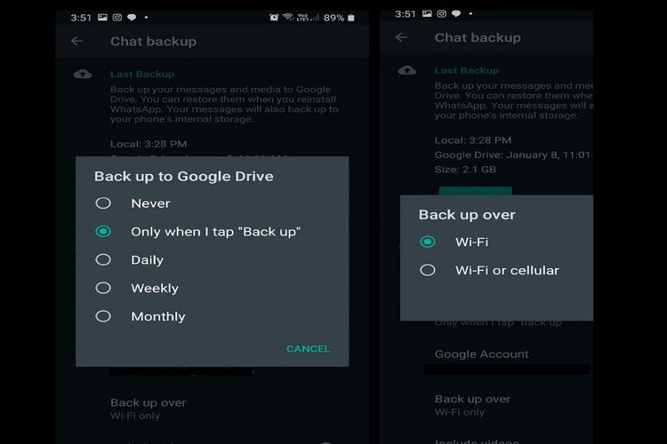 - Backup pesan WhatsApp akan tersimpan dalam Google Drive.
