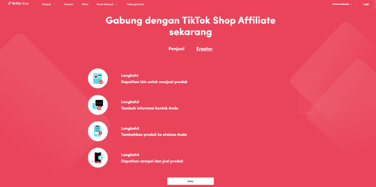 Ada beberapa langkah yang bisa kalian lakukan untuk bergabung menjadi TikTok Affiliate. Namun sebelumnya, pastikan dulu bahwa kalian sudah memiliki akun TikTok Shop terlebih dahulu. Caranya mudah: