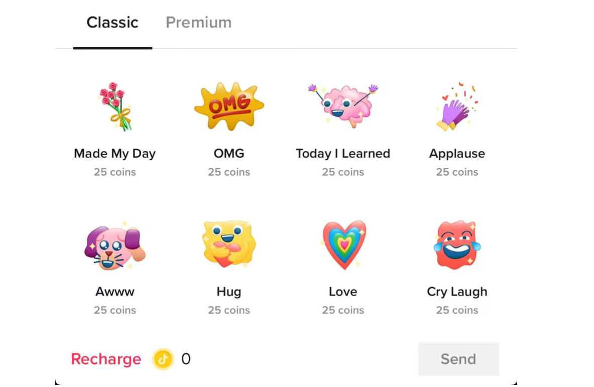 Nantinya, penonton bisa memberikan hadiah (gift) berupa stiker. Tiap stiker ini memiliki range harga yang berbeda, digolongkan dari klasik hingga premium. Jika sudah terkumpul, stiker-stiker tersebut nantinya bisa ditukarkan atau dicairkan menjadi saldo.