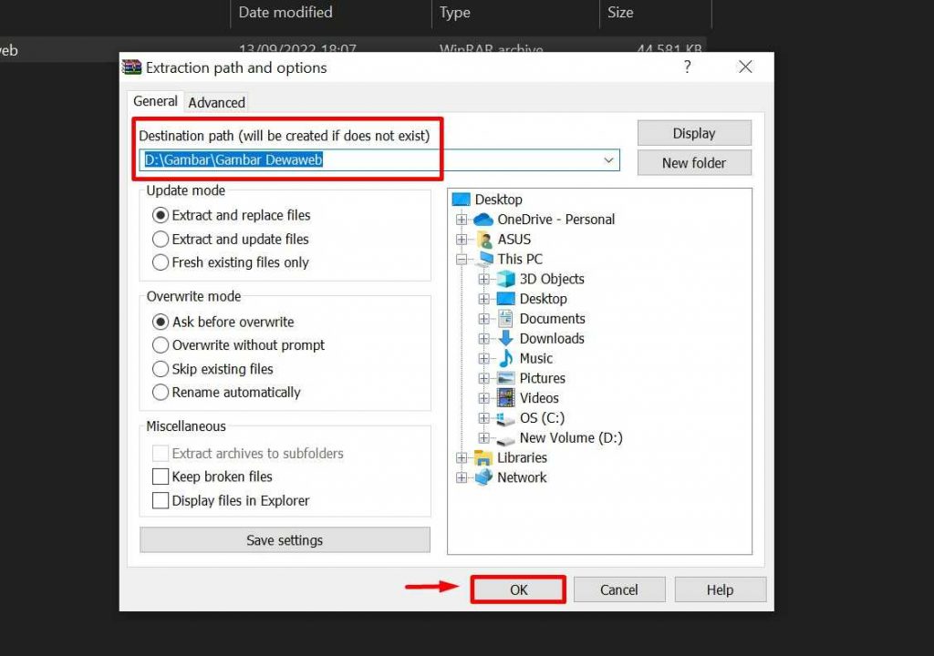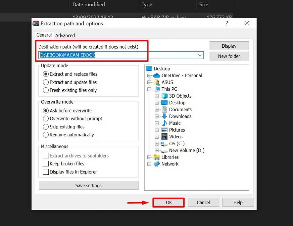 - Selanjutnya akan muncul kotak seperti gambar di bawah. Pada bagian Destination Path pilih lokasi penyimpanan file yang sudah diekstrak nanti.