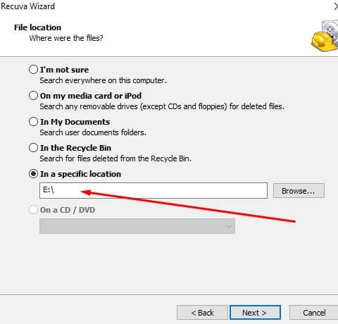 - Arahkan ke direktori atau lokasi file yang terhapus