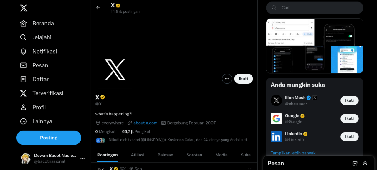 Aplikasi yang sudah akrab dengan nama Twitter ini, beberapa waktu lalu juga telah mengganti username dan display name-nya menjadi X.