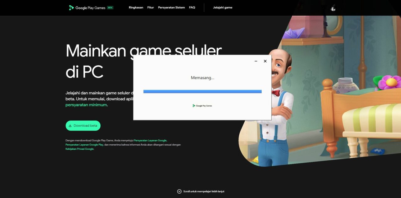 - Pertama, unduh Google Play Games terlebih dahulu di PC yang digunakan.