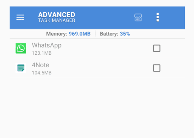 Sebagai contoh, berikut ini cara menghentikan aplikasi berjalan melalui aplikasi Advanced Task Manager: