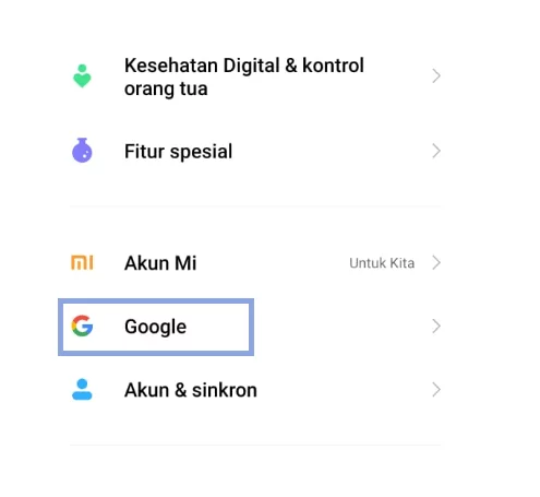 - Kemudian ketuk menu Akun > Pilih akun Google.