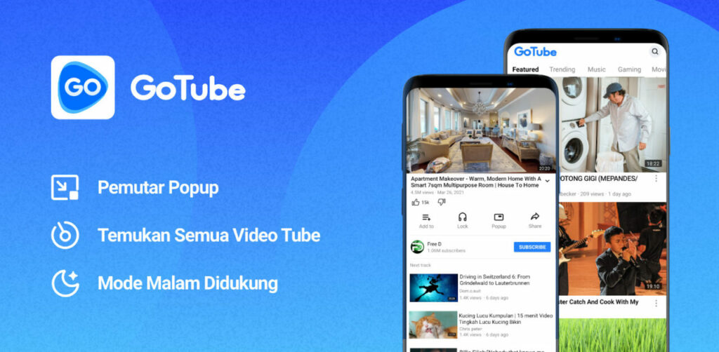 Sebagai contoh, misalnya kali ini kita menggunakan aplikasi GoTube. Cukup install aplikasi GoTube dari Google Play Store.