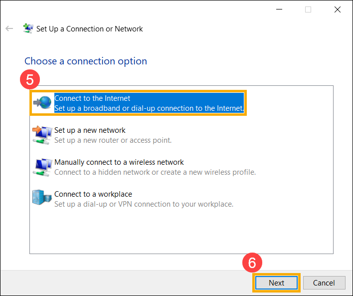 • Selanjutnya, pilih opsi Connect to the Internet, kemudian langsung saja klik Next.