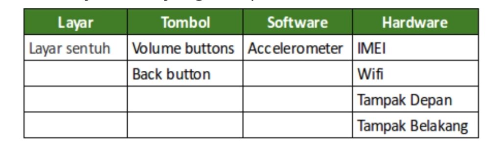 - Hardware: IMEI, WiFi, Tampilan Depan dan Belakang HP lama