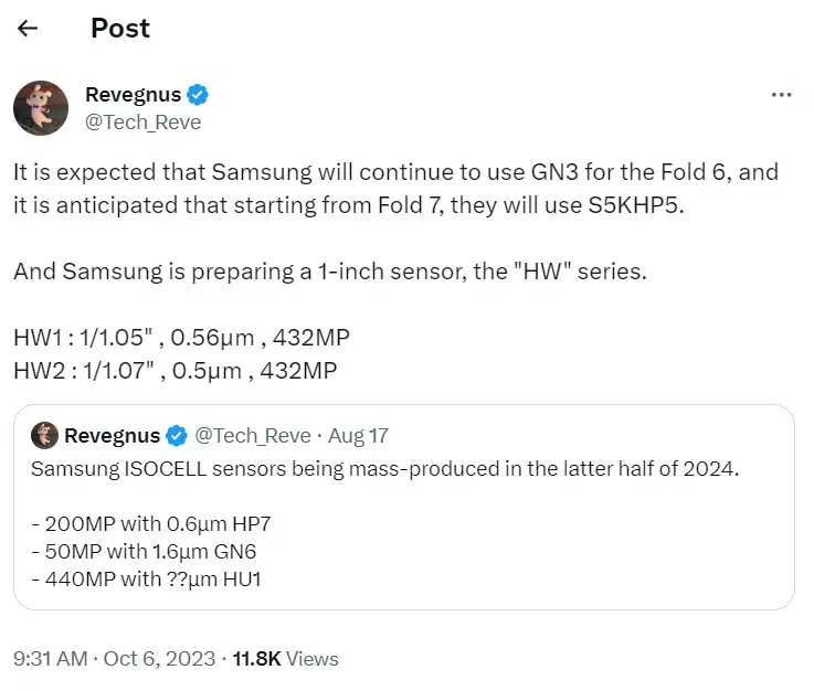 Kembali ke topik tadi, menurut laporan tersebut, perusahaan sedang mengerjakan dua sensor kamera baru bernama “ISOCELL HW1” dan “ISOCELL HW2”, dengan ukuran besar, yaitu kamera 432MP.