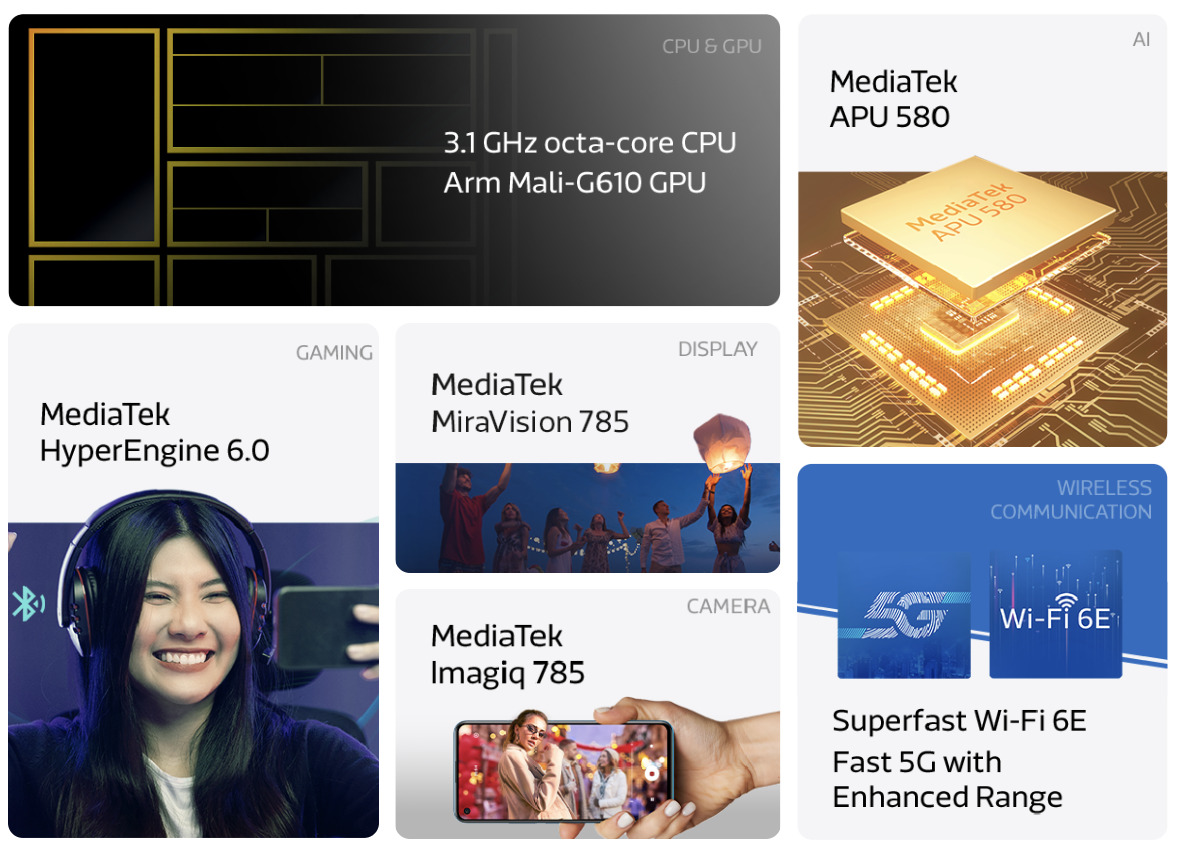 Chipset yang dibangun di atas teknologi proses 4 nm ini dilengkapi dengan HyperEngine 6.0, yang mendukung Vulkan SDK untuk ray tracing dalam game, peningkatan FPS, dan pengoptimalan sumber daya pintar.