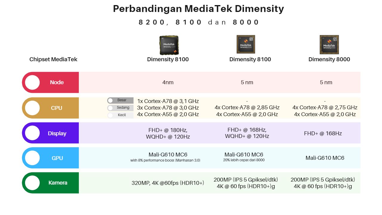 Silakan simak sampai tuntas, ya. Di akhir pembahasan nanti akan ditampilkan perbedaan antara chipset MediaTek 8200, 8100, dan 8000.