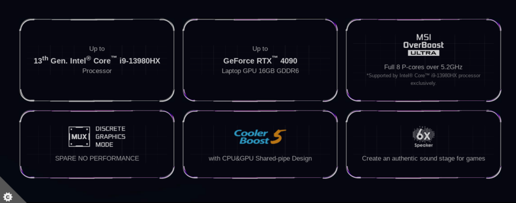 GE78HX Raider yang lebih besar dapat dikonfigurasi hingga prosesor Intel Core i9-13980HX (24Cores/ 32 Threads, hingga 5,6 GHz Max Turbo).