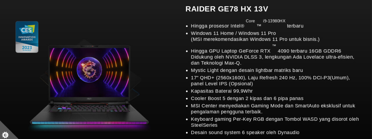 Desain Baru MSI Raider GE78 HX 13V
