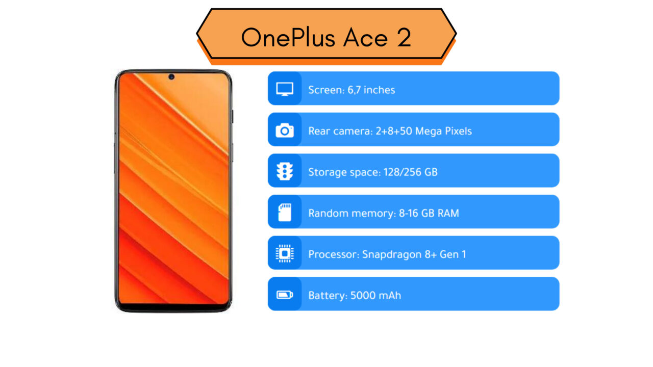 Poster ini bertujuan untuk mengonfirmasi tampilan dari OnePlus Ace 2 yang akan memiliki layar dengan tepi melengkung dan lubang punch sejajar pada bagian tengahnya.
