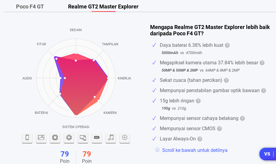 Perbandingan paling krusial terletak pada harganya. Meski keduanya memiliki spek yang hampir sama, namun harganya sedikit berbeda. Poco F4 GT dibanderol dengan harga Rp 7,5 jutaan. Sedangkan Realme GT2 Explorer Master Edition dibanderol dengan harga Rp 8,75 jutaan.