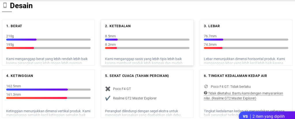 - Ketebalan Realme GT2 adalah 8.2mm, sedangkan Poco F4 GT sedikit lebih tebal yaitu 8.5mm.