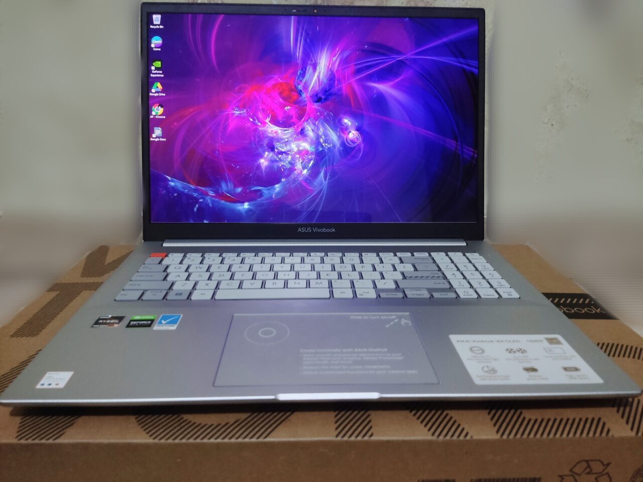 Model yang berada di tangan kami adalah varian tertinggi dari ASUS VivoBook 16X OLED M7600QE yang dibuat dengan prosesor AMD Rryzen 9 5900HX 8C/16T dengan grafis Radeon Vega, dipasangkan dengan NVIDIA GeForce RTX 3050Ti 35-50W GPU, DDR4 32 GB -3200 memori, dan 1 TB penyimpanan SSD.