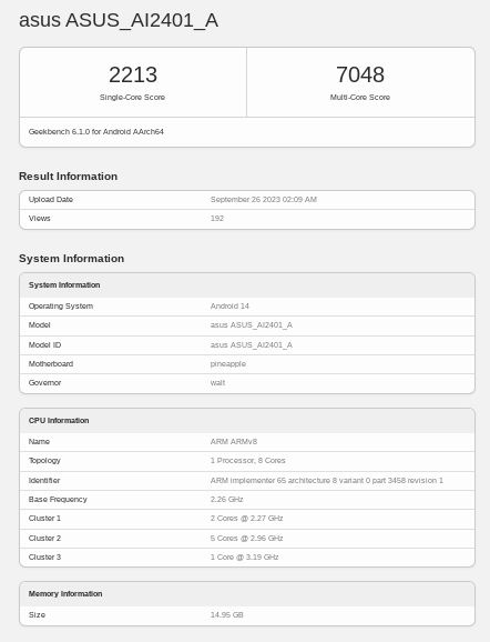 Melalui nomor model ASUS_AI2401_A, yang diyakini merupakan milik ASUS ROG Phone 8 Ultimate, menunjukkan bahwa perangkat ini mungkin dikirimkan dengan Android 14.