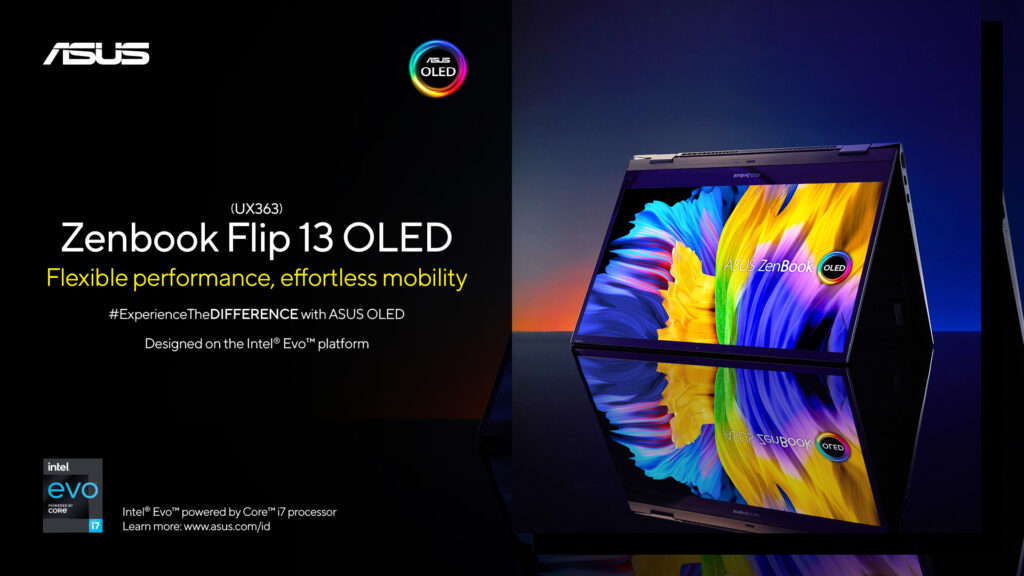 Selain itu, laptop ini juga sudah terverifikasi dengan adanya logo Powered by Intel®️ Evo™️ platform, yang membuktikan bahwa ZenBook Flip 13 OLED (UX363) memiliki performa yang sangat responsif, dengan konektivitas paling mutakhir, serta daya tahan baterai yang panjang. Perlu diketahui bahwa verifikasi Intel® Evo™ hanya terdapat pada laptop premium yang ditenagai oleh prosesor Intel Core generasi ke-11.