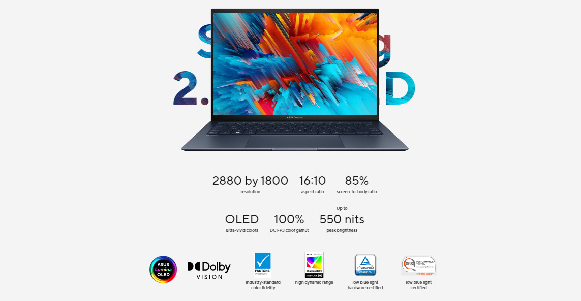 Layar ASUS Lumina OLED pada Zenbook S 13 OLED (UX5304) menampilkan resolusi 2,8K dan dilengkapi dengan berbagai fitur, teknologi, serta inovasi canggih.