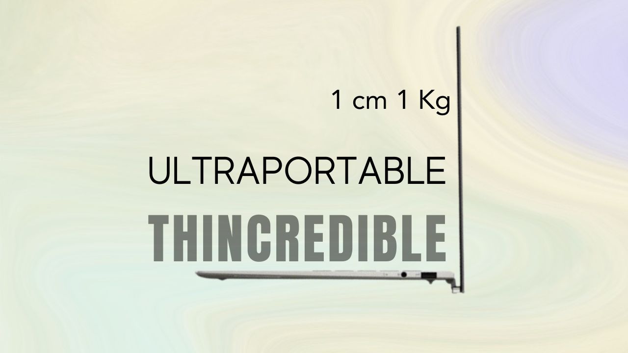 Kehadiran laptop ini dengan bobot hanya 1 kg dan ketebalan 1 cm berkat penggunaan teknik manufaktur canggih dan material yang ringan namun kuat.